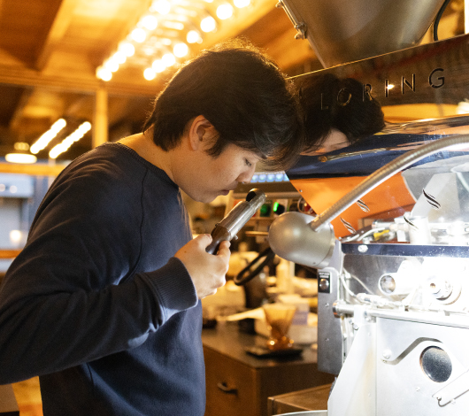 全体の店舗を見ながら自分自身もコーヒーの抽出、焙煎を行っております。 EC出荷や卸先様に出荷準備。それに加えて、1年に数回は農園訪問、豆買付け、COEのジャッジを行うため海外に出向くことがあります。