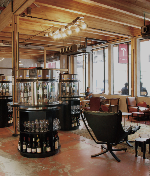 店内には、「エノマティック」というプリペイド式ワイン試飲マシーンで、10ミリ単位でお楽しみ頂け、ワイン愛好家のみならず、超有名レストランのソムリエまで、いろいろな方にご利用頂き、ワイン好きの憩いの場となっております。